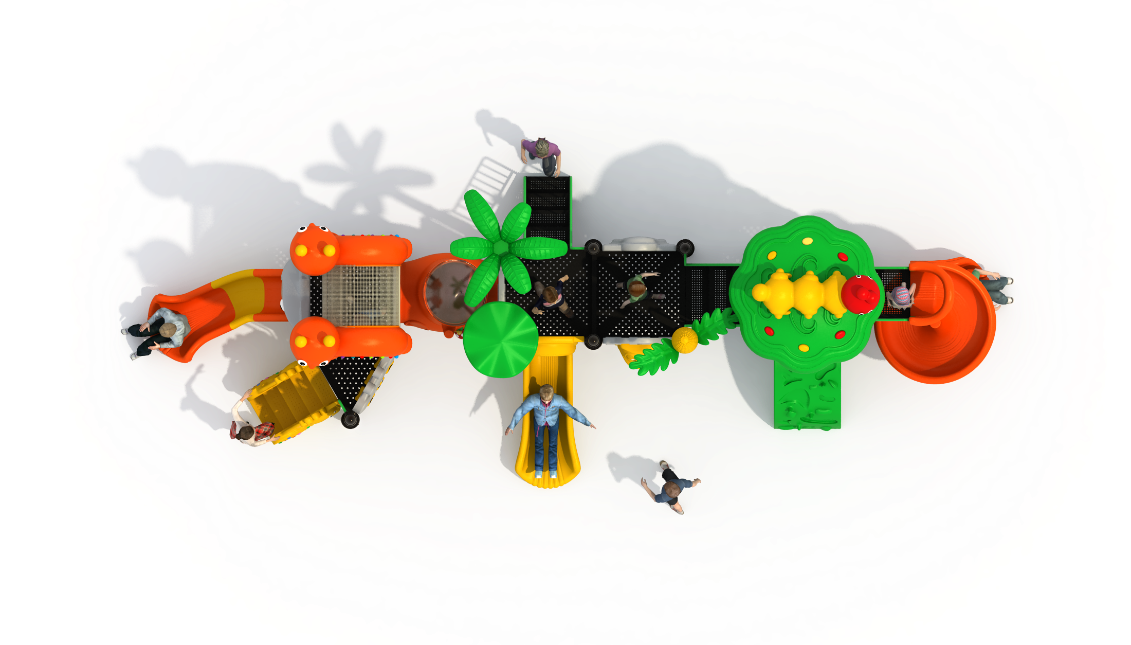产品介绍:聒噪的青蛙、勤劳的蜜蜂、慢吞吞的蜗牛、温驯的绵羊还有呆楞的章鱼等可爱的动物们都聚集在一起。这里是动物们和孩子们共同玩耍的天堂。动物系列以不同动物作为设计主题,花朵绿叶作为设计点缀,以鲜艳的色调迅速吸引孩子们的目光,让孩子们在动物滑梯上享受运动的乐趣。
