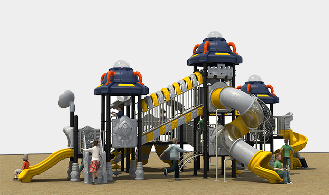 产品介绍:一道光束投射下来,空中出现不明飞行物,长相怪异的外星人和飞碟一起降落。原来是未知行星的远方来客,他们要来带领孩子们开始一次难忘的太空旅行。飞碟系列以飞碟为设计主要元素,将飞碟与滑梯组合,开启去往星空的冒险之旅。