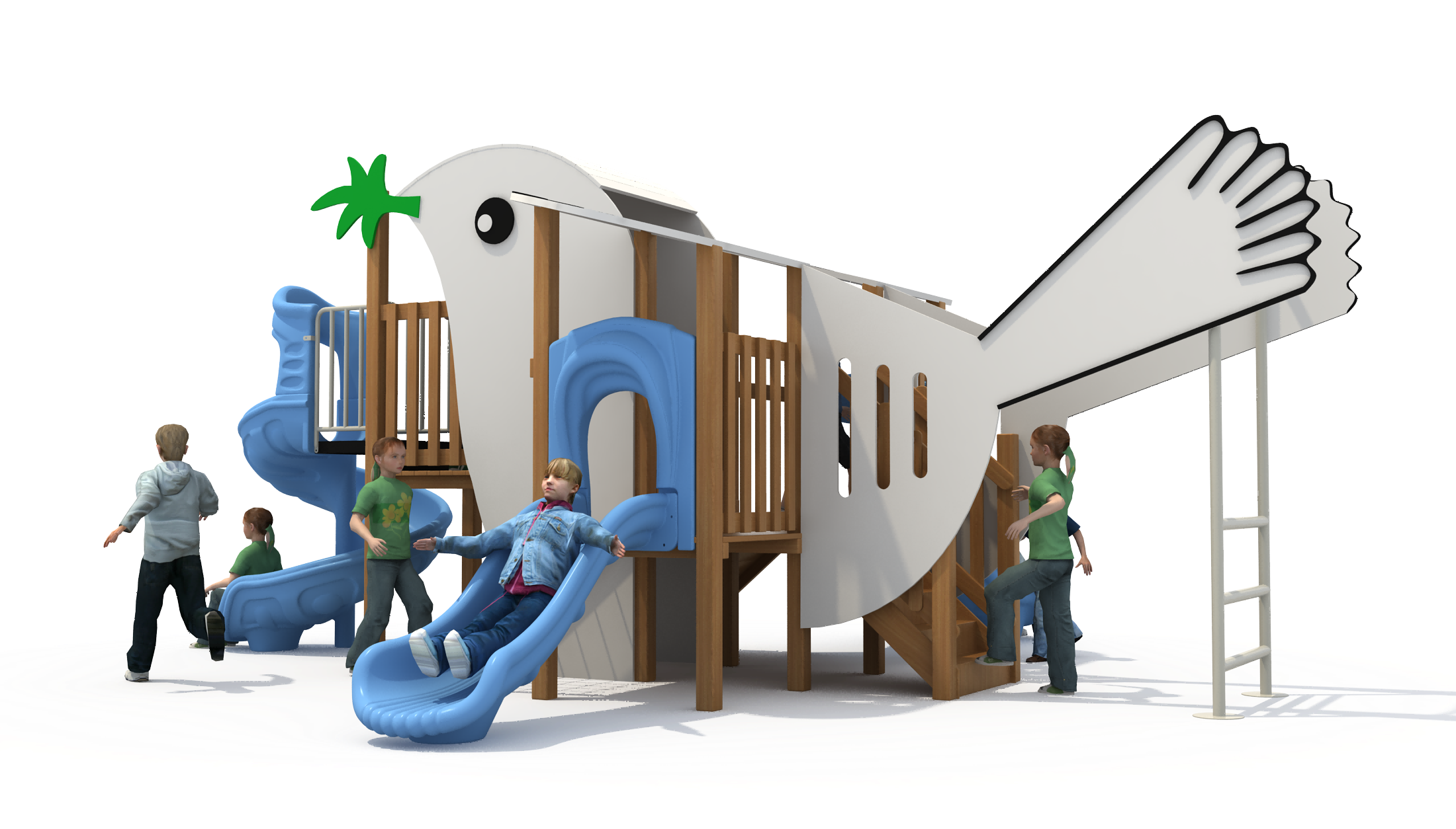 产品介绍:呆呆的海豹在海岸边慵懒地晒着太阳,椰子树也在岸边享受阳光。没有人能拒绝夏日的海边,孩子们蜂拥而至,将笑声把海滩装满。这款木质滑梯以海豹为设计主题,用蓝白色结合表达海边的清爽感,多种运动器材连接起来,成就孩子们的夏日海滩梦想。