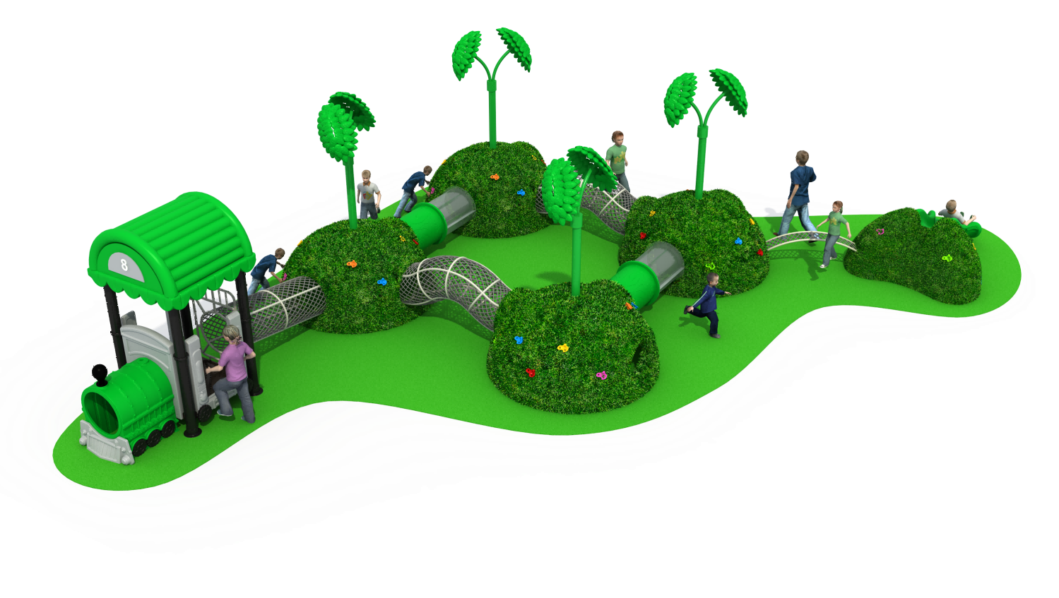 产品介绍:多样的草丛组合变化成孩子们的梦幻迷宫。孩子们将在每个草丛中穿梭,攀爬,享受从不同的出口爬出来的新鲜感。移动迷宫以草丛为设计主题,攀爬网、滑梯还有木板等不同形式的运动设施将一个个拟真草丛连接,让孩子们在运动过程中找到天真的乐趣。
