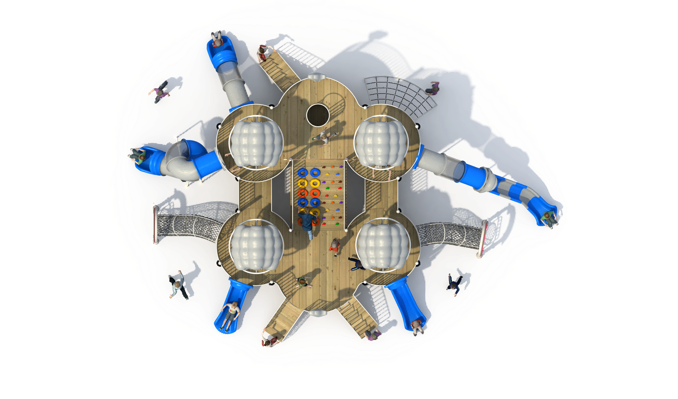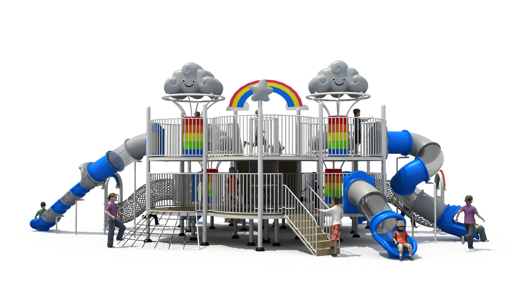 产品介绍:软绵绵的云朵在天空中游荡,阳光折射出的彩虹也在云朵边躲藏,晴天是最适合玩耍的日子。孩子们闯进天空上,躲在云朵下享受自然的馈赠。云朵系列,以云朵为设计主题,彩虹为点缀,蓝灰色为主色调,将云朵和滑梯结合,让孩子们在蓝天白云下快乐玩耍。