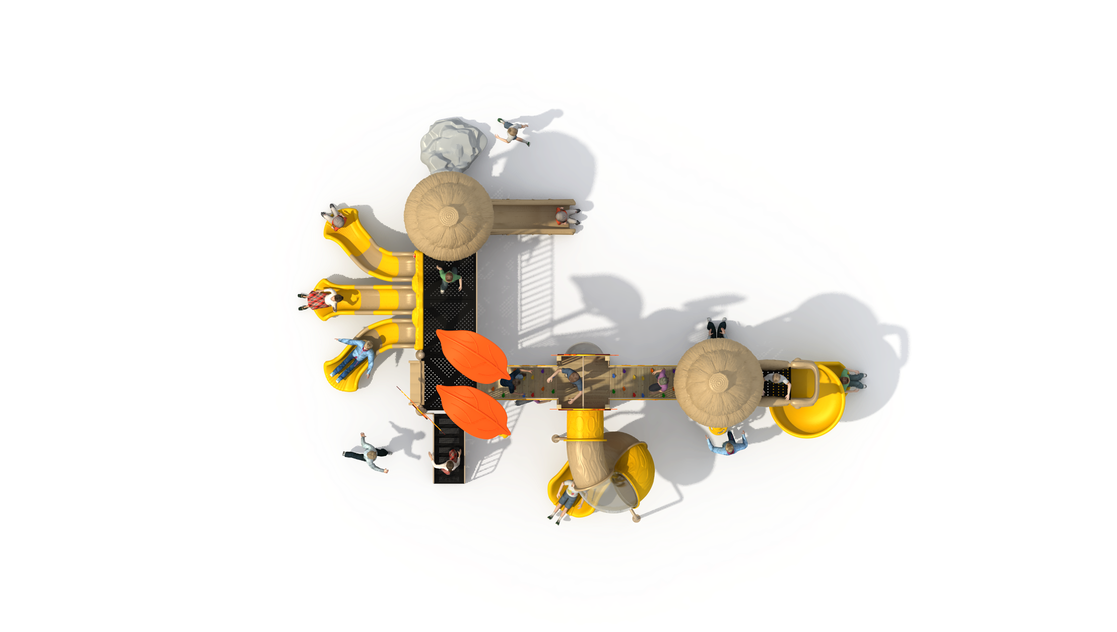 产品介绍:秋收后的麦田里还有伫立在原地的稻草人们,稻草人和草垛是孩子们放学后的秘密乐园。孩子们可以钻进草垛中穿梭,站在花朵边舞蹈,在稻草人身上攀爬。稻草人系列以农田风光为设计灵感,将不同的玩乐方式组合,在城市中创建农田乌托邦,让身在城市的孩子们增加对田园的了解。