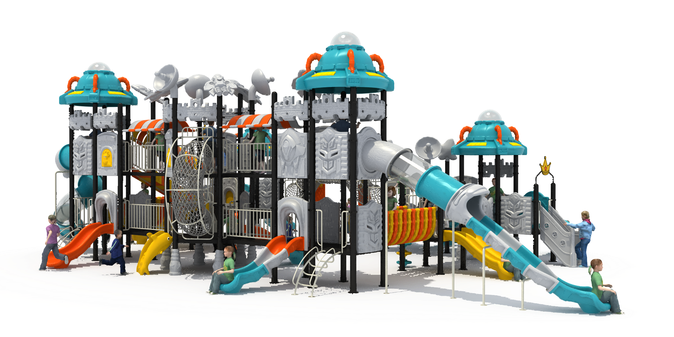 产品介绍:一道光束投射下来,空中出现不明飞行物,长相怪异的外星人和飞碟一起降落。原来是未知行星的远方来客,他们要来带领孩子们开始一次难忘的太空旅行。飞碟系列以飞碟为设计主要元素,将飞碟与滑梯组合,开启去往星空的冒险之旅。
