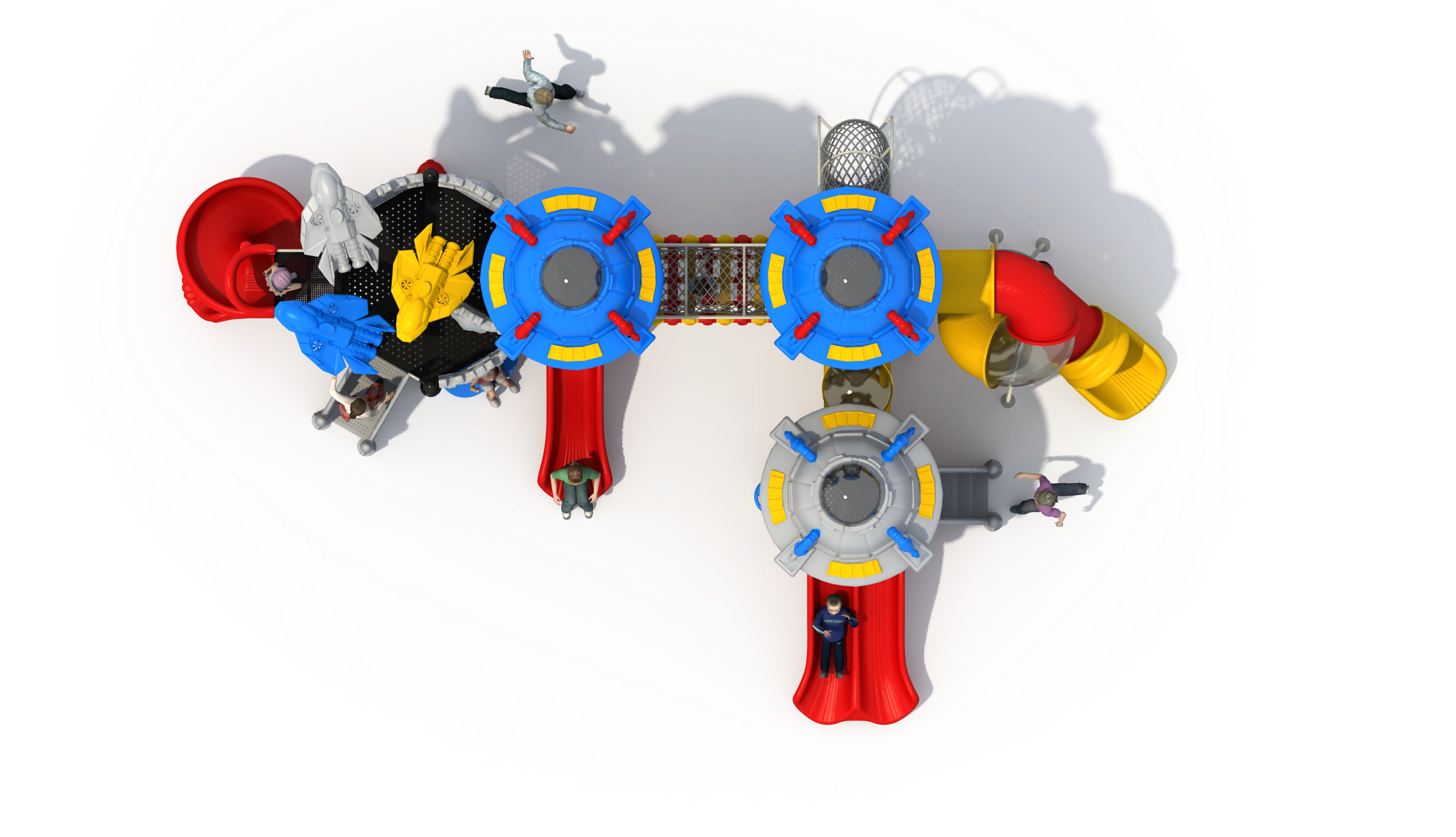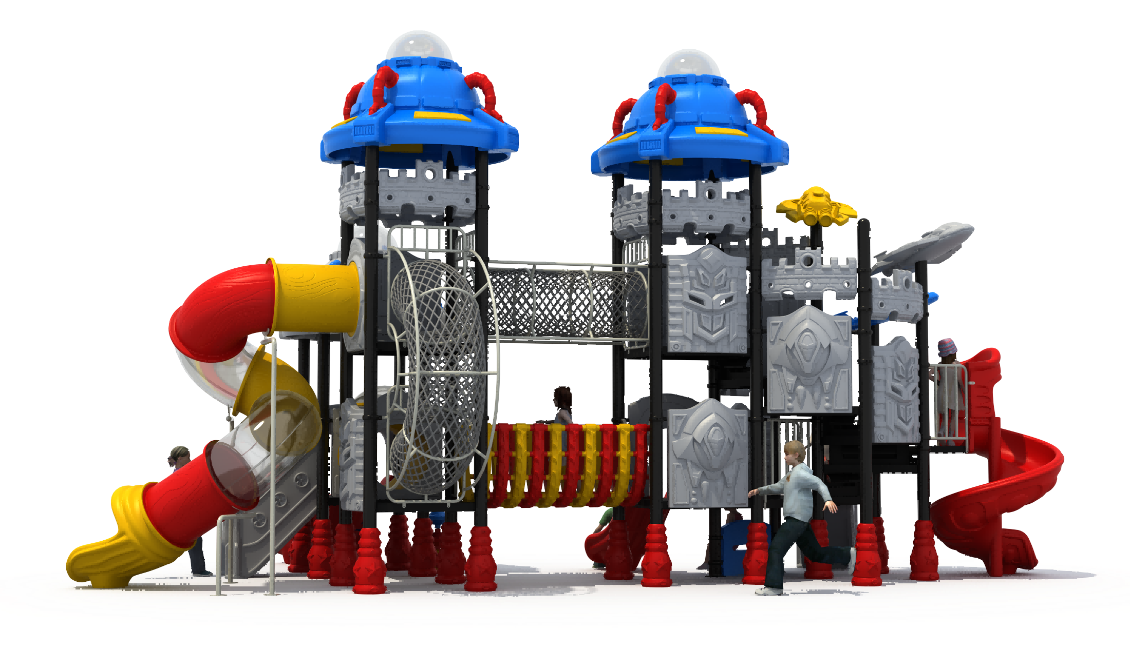 产品介绍:一道光束投射下来,空中出现不明飞行物,长相怪异的外星人和飞碟一起降落。原来是未知行星的远方来客,他们要来带领孩子们开始一次难忘的太空旅行。飞碟系列以飞碟为设计主要元素,将飞碟与滑梯组合,开启去往星空的冒险之旅。