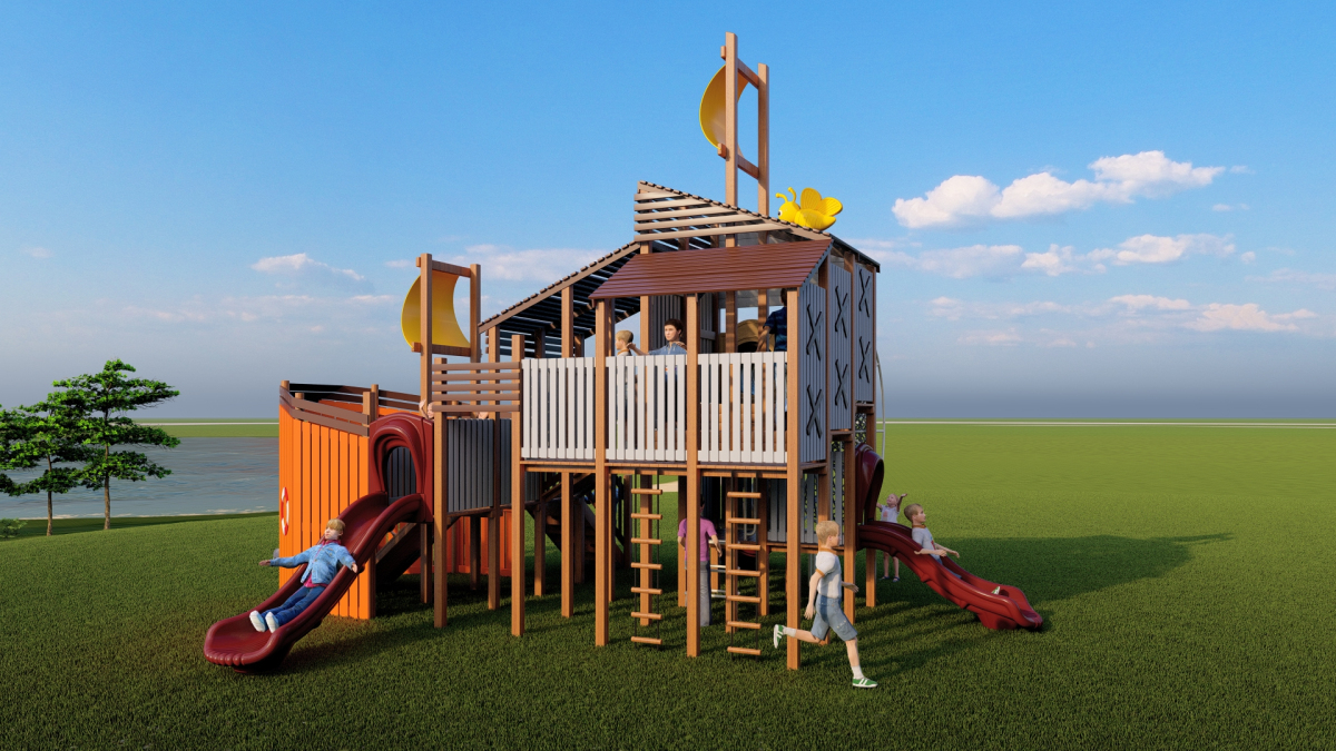产品介绍:在蒸蒸日上游乐的创新天地里,一款帆船造型的木质滑梯正引领着孩子们扬帆起航,黄色的小蜜蜂停留在屋顶休憩,探索无尽的欢乐与想象!这款滑梯采用明亮的色彩与流线型设计,仿佛一艘即将乘风破浪的探险船,等待着勇敢的小船长们踏上奇妙的旅程。
