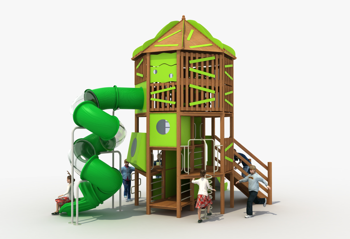 产品介绍:一款充满梦幻与冒险的木质滑梯,它宛如一座矗立在童话世界中的城堡,等待着勇敢的孩子们来探索。这款滑梯采用纯天然原木打造,绿棕两色交织,呈现出一种温馨而自然的风格。城堡式设计不仅外观宏伟,更融入了多种元素,让孩子们仿佛置身于一个奇幻的王国。